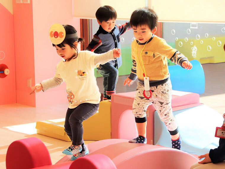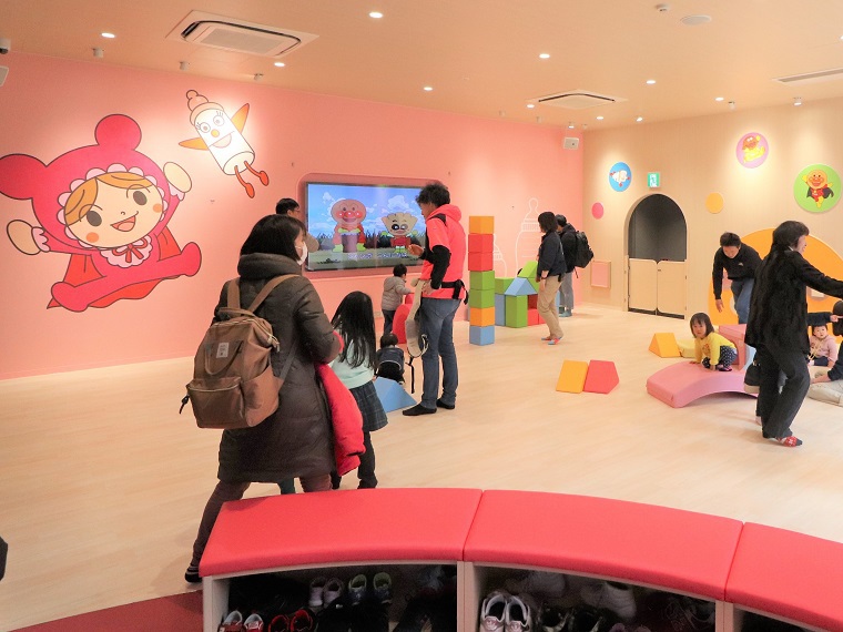あかちゃんまんテラスは衝撃を吸収する柔らかい床で 靴を脱いで遊べるスペースです。